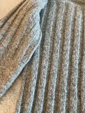 Light grey longer sweater turtle neck very very soft. Speckles of darker grey with different patterns .everything I’m selling is to sell is why reasonably priced nothing wrong with them. I took a closeup as well no fuzz very good condition. 😊