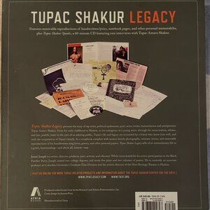 Tupac Shakur Legacy presents the story of rap artist, political spokesman, poet, actor, writer, humanitarian & entrepreneur Tupac Aramu Shakur. From his early childhood in Harlem, to his emergence as a young artist, through his incarceration, release, & last, prolific years in the eyes of an adoring public, Tupac's life & legacy are recounted by a friend who knew him well, & with the cooperation of Tupac's family. In a scrapbook complete with unseen family photographs, intimate stories, & removable reproductions of his handwritten song lyrics, poetry, and other personal papers, Tupac Shakur Legacy, tells of an extraordinary life in a gritty, heartrending & above all, honest way.