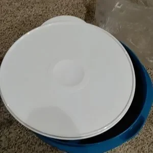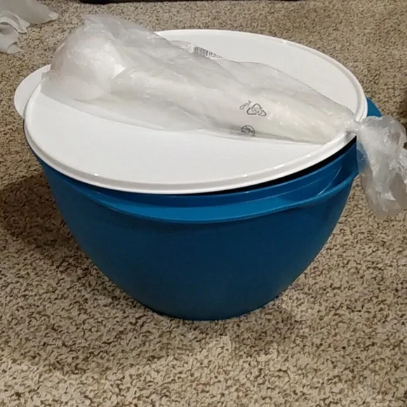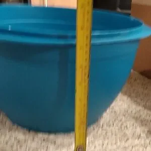 Bright aqua Tupperware container. Ideal for kitchen use.