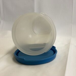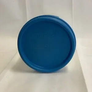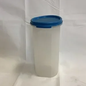 Tall storage container with a blue lid. Perfect for kitchen organization.