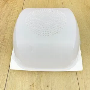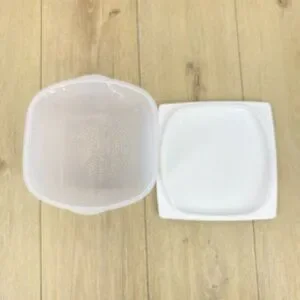 Tupperware CheeSmart Cheese & Deli Storage Container. Transparent Lid, Keeps food fresher for longer thanks to the innovative CondensControl technology lid membrane, Reversable tray, 100% BPA free plastic. Dishwasher safe, not for freezer or microwave. 8.07" L x 8.07" Wide x 3.74" H. In Perfect preowned condition, zero flaws.
