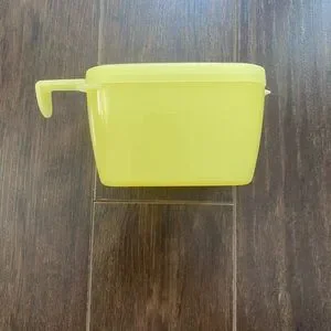 Tupperware cheese hanger designed to hold cheese slices and hang from a refrigerator shelf. In excellent pre-owned condition. #Tupperware #CheeseStorage #KitchenStorage #VintageKitchen