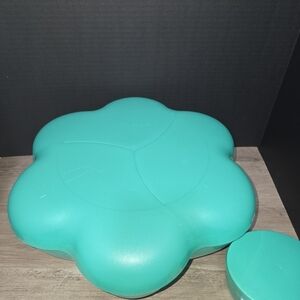 Tupperware Chips and Dip Green Bowl, Lid and one dip cup with Lid