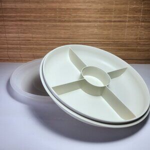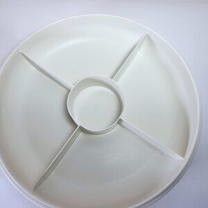 Tupperware Divided Vegetable or Fruit Serving Tray with Lid 5 Sections Almond