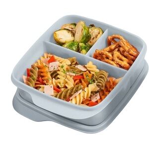 Set includes two containers, each with one 1⅓-cup/340 mL and two ⅓-cup/105 mL separated compartments and airtight seals.