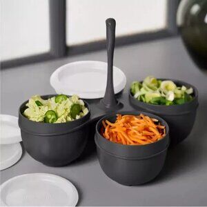 Interlocking design incorporates four 1 cup bowls and lids to stylishly serve your condiments to your guests