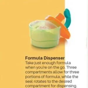Take just enough formula or protein powder when you're on the go. Three compartments allow for three portions of formula or protein powders, while the seal rotates to the desired compartment for dispensing.