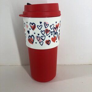 Tupperware Heart to Heart Red White Eco Cup To Go with Extra Lid Sz 490mL/16 oz