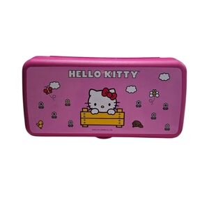 Cute Hello Kitty lunch box in pink. Features adorable Hello Kitty design with flowers and animals. Tupperware 2011
