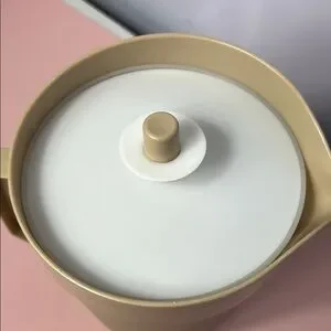 Elevate your kitchen with this stylish tan and white Tupperware pitcher. Its sleek design and secure lid make it a practical addition to your kitchen accessories. Enjoy effortless pouring. Great used condition. See photos for measurements. Offers welcome. #Tupperware #Pitcher #Vintage #Kitchenware