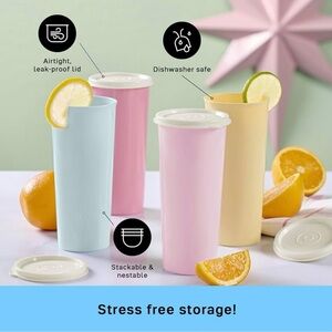 Tupperware Pastel Tumblers Drinkware Set - Pink, Blue, Yellow 12 oz