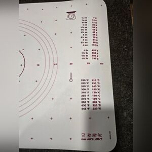 Large working surface keeps counters clean during meal prep and baking; includes baking guides and conversion charts. 25 x 18"