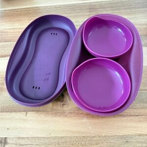 Three-piece Tupperware set in vibrant purple. Includes :