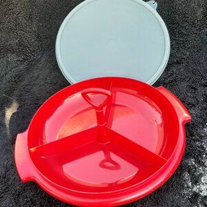 Tupperware Red Suzette 3 Part Divided Dish Relish Serving Platter 8" D