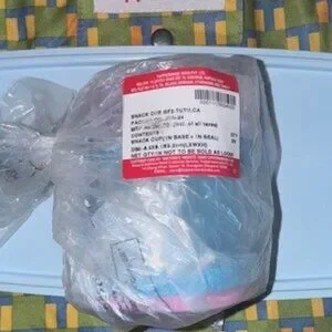 This BNIP set is imported and includes 2 Snack Cup containers (one blue and one pink).