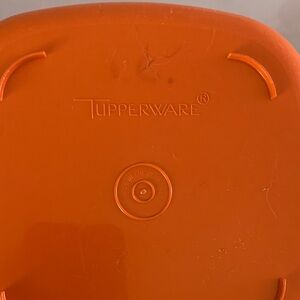 Vibrant orange Tupperware with a cream lid. Ideal for kitchen storage. Has insert. As pictured. Vintage. Size 9”x9”x5”.