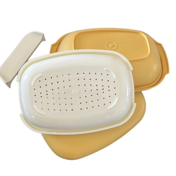 Yellow Tupperware Corn Veggie Vegetable Steamer Amazing condition; this was stored in the back of my Mom’s cupboard. Has no scratches. Has 4 pieces.