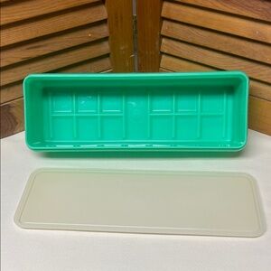 Vintage Tupperware rectangular container with secure lid. Perfect for storing celery or other perishables in the fridge. Can also be used to keep dry goods fresh in the cupboard. In previously enjoyed, good condition. Note: plastic is scratched from age and previous use; translucent lid colour shows age. This piece was made in Canada 🇨🇦