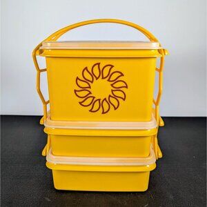 Tupperware Vintage Square Away Lunch Set 7 pieces with sun logo 1362 & 1674