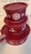 Tupperware three red containers with lids. snowflakes, stars, and Reindeer!