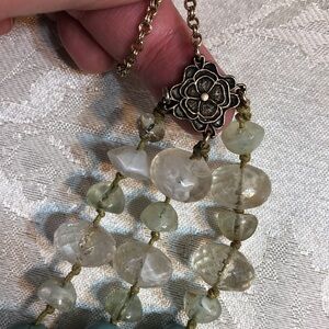 Beautiful beaded necklace in excellent used condition featuring white and turquoise beads in a three-layer design.