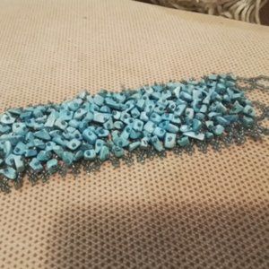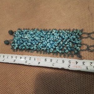 Turquoise Beads With Blue Small Beads Loon Cuff Woman Bracelet Vintage (M3)