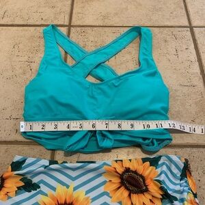 💙 Turquoise Bikini Top and Sunflower Print Bottoms