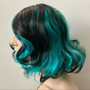 Brand new, never worn turquoise and black wig Synthetic fibre Fit is on the smaller side