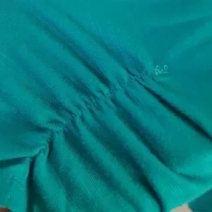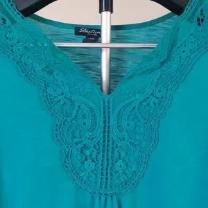A turquoise Blouse with detailing.