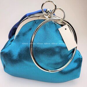 Turquoise Blue Green Floral Satin Evening Clutch Purse NWT