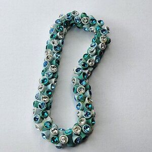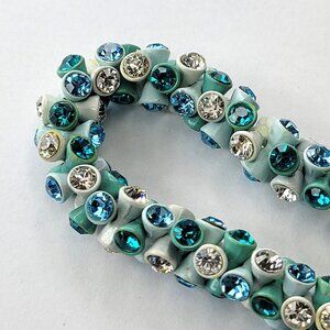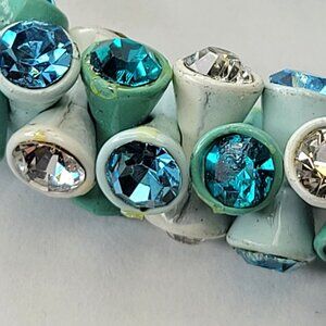 Turquoise Blue and White Rhinestone Stretch Bracelet