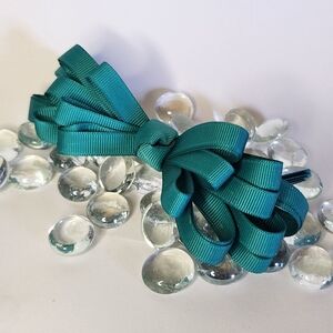 Turquoise Bow Woman's Hair Clip, Blue-Green, Ribbon Clip