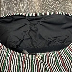 Strapless crop top bathing suit top with padded bra attached. Padding inserts can be removed.