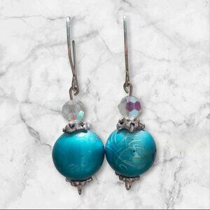 Material: Turquoise Drawbench Baked Painted Glass Beads, Silver Caps, Glass Crystal Beads, Silver-Plated Ear Wires