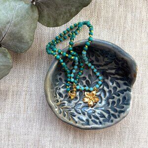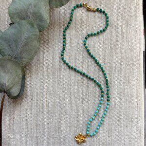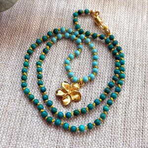 Turquoise Hand Knotted Necklace with Gold Vermeil Flower Charm - Made in Canada