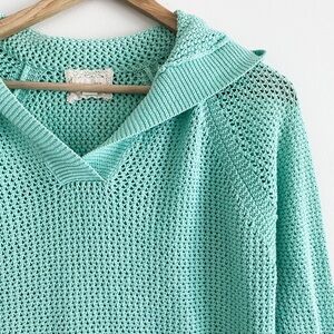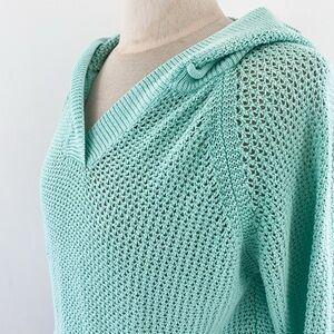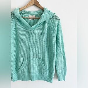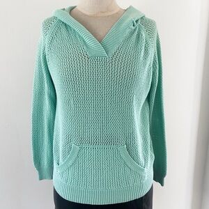 Turquoise Open-Knit Hoodie by Shirt 469 – Size Medium, Linen Cotton Blend