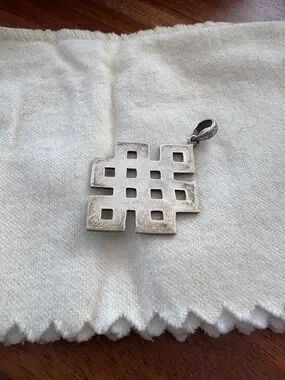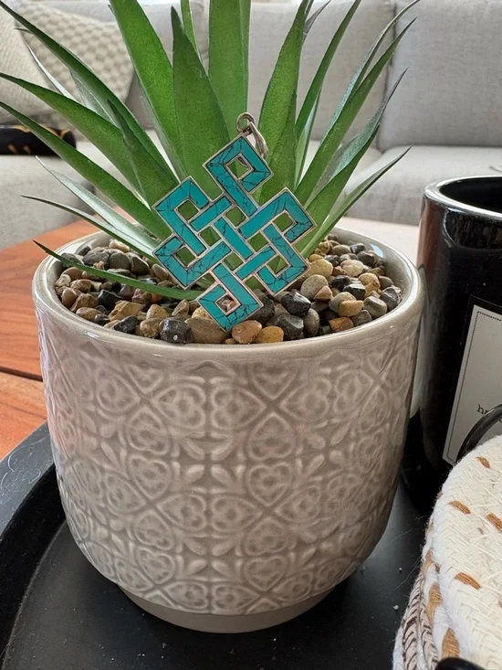 Turquoise labyrinth pendant set in sterling silver. 1.5”x1.5”