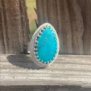 Size 6.5 Handmade sterling silver ring with real Hubei Turquoise