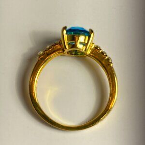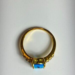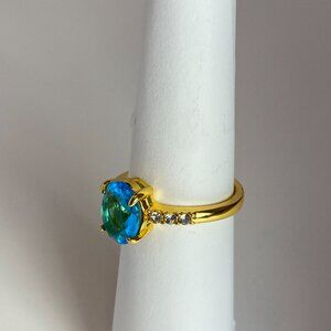 Beautiful turquoise costume jewelry ring with large centre stone and small stones on the side.