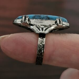 Elegant turquoise ring in silver color setting. Perfect for adding a pop of color to any outfit.