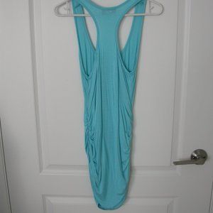Turquoise tank top with rauched sides - 17" pit to pit, 35" shoulder to hem - 94% rayon, 6% spandex - hand wash, line dry - new, never worn