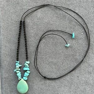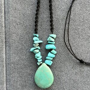 Adjustable turquoise pendant and beads on a nylon cord