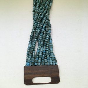 Made in Riviera Maya, Mexico, Handmade beautiful Bracelet with a hand-carved wooden clasp, made of turquoise colour beads, can be worn in many different ways. A very original and beautiful bracelet.