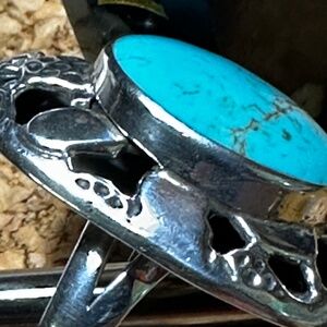 This is a quality ring with a combination of turquoise and sterling silver to a unique design