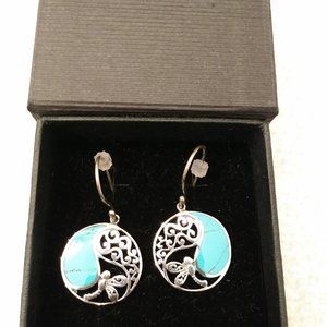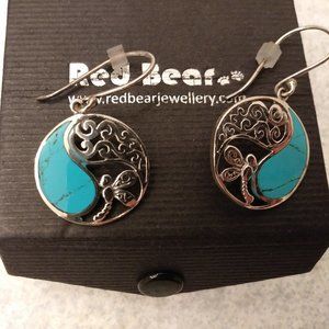 Turquoise sterling silver earrings with Yin Yang and Butterfly motif 🦋