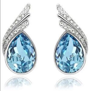 💎Turquoise Gemstone Fashion Angel Wings Crystal Necklace Earrings Jewelry Set