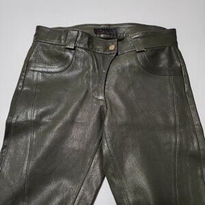 Turrath Army Green Lambskin Leather Mid Rise Skinny Pants