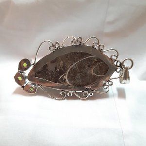 HANDMADE BOLD PENDANT JEWELRY GENUINE NATURAL GREY BROWN TURTELLA DRUZY + OLIVE GREEN PERIDOT GEMSTONE SILVER PLATED 3.25" L. Excellent piece for Collectibles.