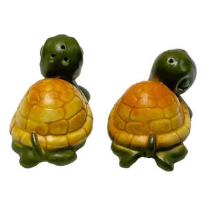 Turtle Anthromorphic Salt and Pepper Set Japan Vintage Ceramic 1970s