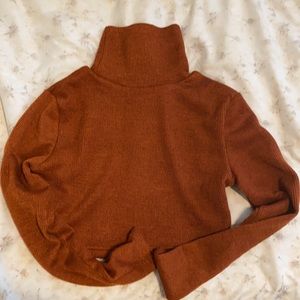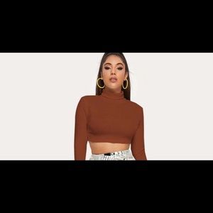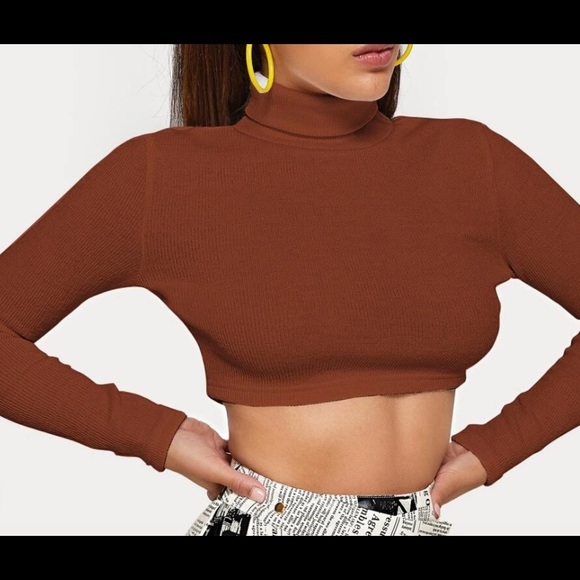 Rust Brown polyester turtle neck crop top